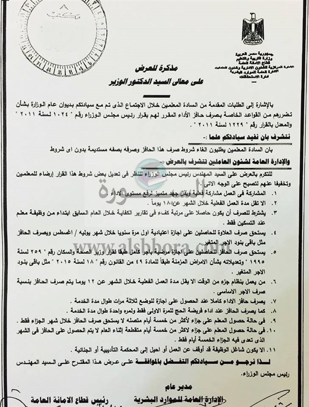 عاجل وبالمستندات| "التعليم" تعلن عن القواعد الجديدة لصرف حافز الآداء
