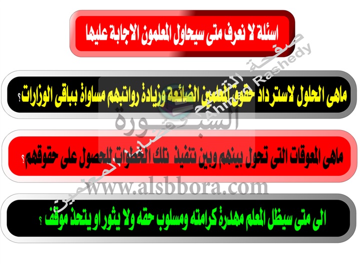 دشت نشطاء التعليم كوميكس وضعوا فيه عدة اسئلة للمعلمين قائلين "اسئلة لا نعرف متى سيحاول المعلمون الاجابة عليها".