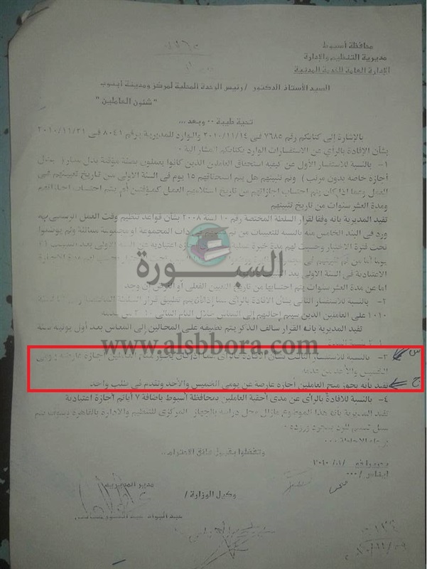 أعلنت مديرية التربية والتعليم بمحافظة اسيوط عن جواز منح المعلمين إجازة عارضة يومى الخميس والأحد، جاء ذلك بناء على استفسارات من أحد المعلمين بجواز الحصول على إجازة عارضة يومى الخميس والأحد.