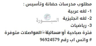 تعلن مؤسسة تعليمية في دولة الكويت عن عن وظائف جديدة للمعلمين والمعلمات وذلك وفقا لنص الإعلان التالي:-