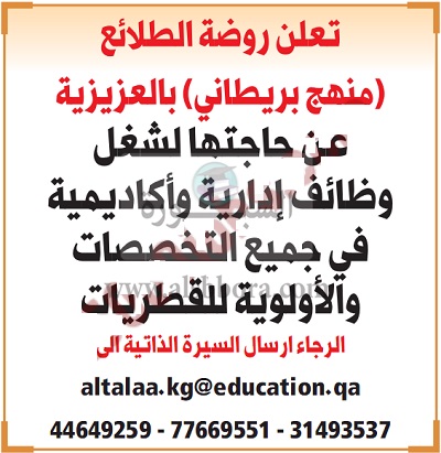 تعلن مدرسة خاصة في دولة قطر عن وظائف جديدة للمعلمين والمعلمات وذلك وفقا لنص الإعلان التالي: