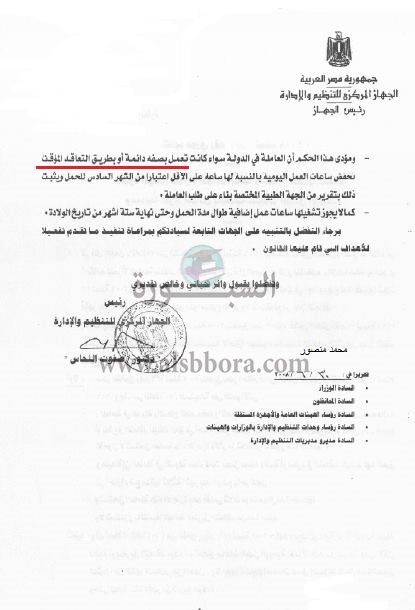 أعلن الجهاز المركزى للتنظيم والادارة عن تخفيض ساعات العمل اليومية عن هؤلاء الفئة من المعلمين، سواء العمل بصفة دائمة أو بطريق التعاقد المؤقت.