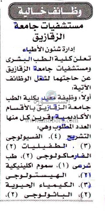 تعلن جامعة الزقازيق عن وظائف جديدة لأعضاء هيئة التدريس "من حملة الماجستير والدكتوراة" وذلك وفقا لنص الإعلان التالي: