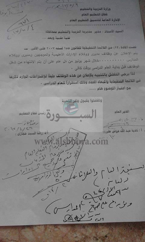 بالمستندات| التعليم تشدد على الإلتزام بمواعيد الإعلان عن الوظائف القيادية