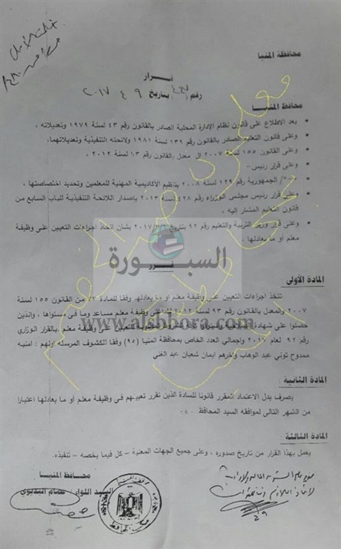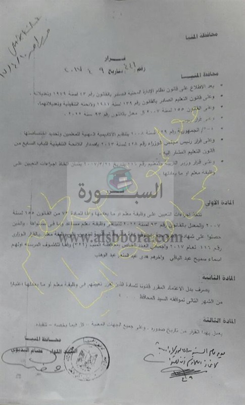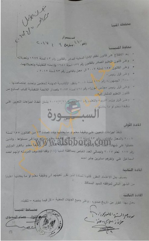 بالمستندات| ننشر قرارات أرقام 445 و446 و447 بشأن ترقية المعلمين المساعدين الى معلم وصرف بدل الاعتماد خلال شهر مايو الجارى