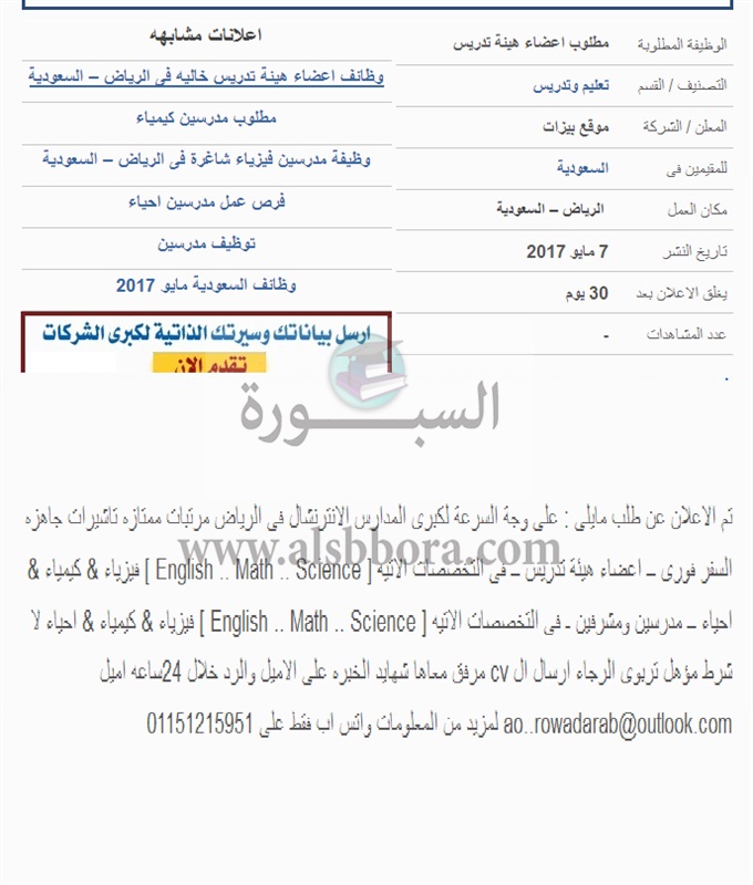 تعلن عدد المدارس الخاصة في السعودية عن وظائف جديدة للمعلمين والمعلمات وذلك وفقا لنص الإعلان التالي:-