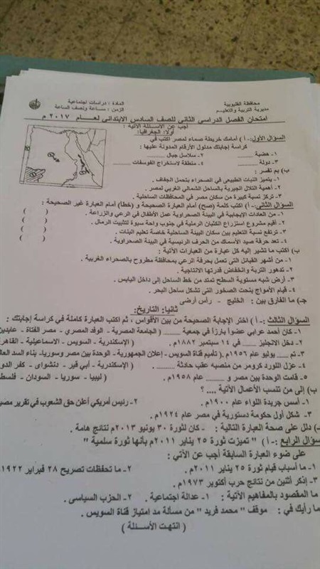 ننشر تسريبات ورقة أسئلة مادة الدراسات الاجتماعية للشهادة الابتدائية بالقليوبية