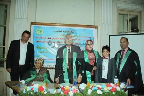 وكانت لجنة الحكم والمناقشة قد تكونت من الأستاذ الدكتور سليمان الخضرى الشيخ عميد معهد الدراسات العربية " رئيساً للجنة ومناقشاً " والأستاذة الدكتورة سميرة أبو زيد عبده أستاذ التربية الخاصة بكلية التربية بحلوان "مشرفاً"، والأستاذ الدكتور صبحى عبد الفتاح الكافورى عميد كلية التربية بكفرالشيخ "مناقشا" وقد تم منح الباحثة درجة الماجستير بتقدير ممتاز .