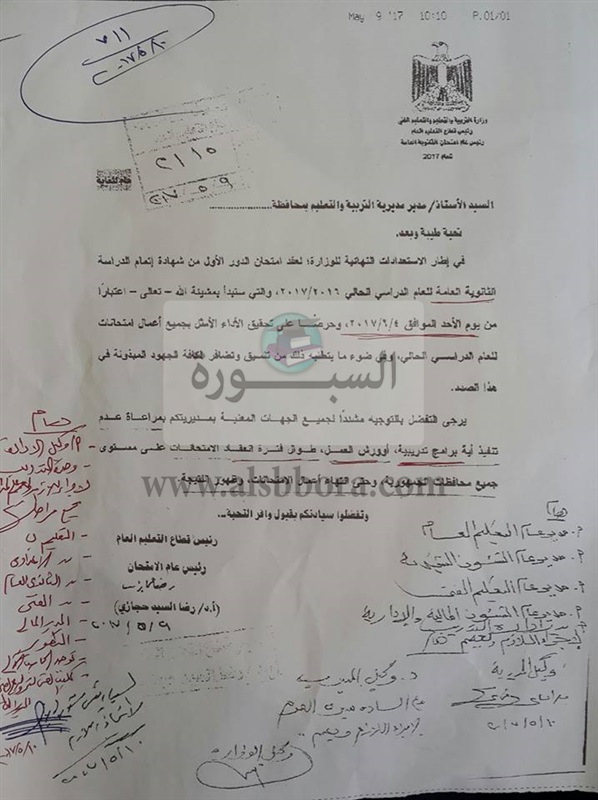 أصدرت وزارة التربية والتعليم والتعليم الفنى قرارا وزاريا هاما الى مديريات التربية والتعليم على مستوى جميع المحافظات تطالبهم بعدم تنفيذ أية برامج تدريبية او ورش العمل طوال فترة انعقاد الامتحانات وحتى انتهاء أعمالها وظهور النتيجة.