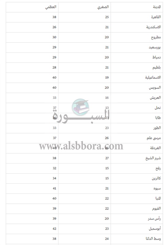 وإليكم درجات الحرارة المتوقعة اليوم على بعض المحافظات فهي كالتالي :-
