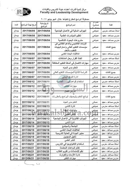نظم قطـاع الدراسـات العـليـا والبحـوث بجـامعـة المنـوفيــة مصـفوفــة للبــرامــج المقتــرح تنفيــذهــا لاعضــاء هـيئــة الـتــدريـس والـهيئــة المعــاونة خــلال شـهر يـونـيــه 2017 بمقــر مـركــز تنميــة قــدرات أعضــاء هيئــة التــدريس والقيــادات بالإدارة العـامــة للجامعة كما هو مبين بالجدول