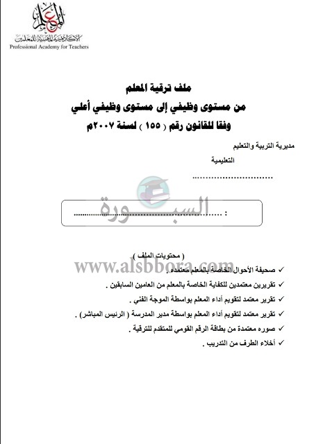 ينشر موقع السبورة ملف ترقيات المعلمين لعام 2012 والذين قضوا 5 سنوات ويستحقون الترقية فى 31 ديسمبر 2017.