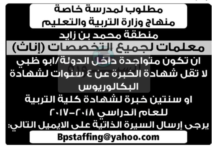 تعلن مدارس أبوظبي الإماراتية عن وظائف جديدة للمعلمين والمعلمات في جميع المواد وذلك وفقا لنص الإعلان التالي: