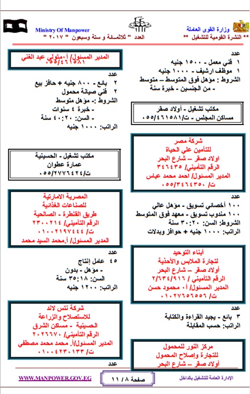 برواتب تصل لـ4000 جنيه القوى العاملة تعلن عن وظائف لمختلف المؤهلات..تقدم الان