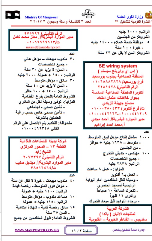 والوظائف متاحة لجميع خريجى الكليات هندسة وتجارة وحقوق وعلوم واداب وتربية وعلوم وزراعة السن واقتصاد منزلى وحاسب الى وفنون وجميع الدبلومات والشهادات الأعدادية والأبتدائية