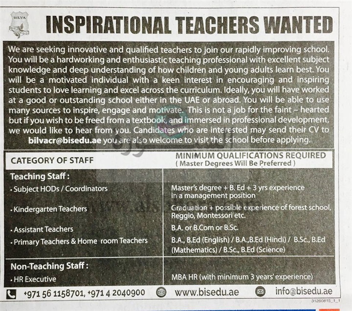 تعلن مدرسة خاصة في دولة قطر عن وظائف جديدة للمعلمين والمعلمات في جميع المواد وذلك وفقا لنص الإعلان التالي: