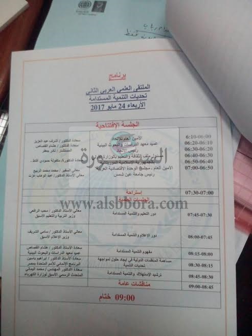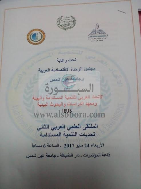 ينظم معهد الدراسات و البحوث البيئية بجامعة عين شمس بالتعاون مع الإتحاد العربي للتنمية المستدامة الملتقى العلمي العربي الثاني تحت شعار "تحديات التنمية المستدامة" برعاية مجلس الوحدة الإقتصادية العربية وجامعة عين شمس ، بحضور الأمين العام للإتحاد العربي للتنمية المستدامة أشرف عبد العزيز ، عبد الوهاب عزت رئيس الجامعة ، وذلك فى تمام السادسة من مساء الأربعاء الموافق 24 من مايو الجاري بدار ضيافة الجامعة ، صرح بذلك هشام القصاص عميد المعهد.