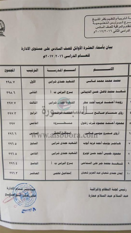 ننشر أسماء أوائل الشهادة الابتدائية بإدارة برج البرلس التعليمية بكفر الشيخ