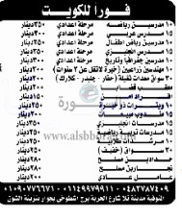 تعلن مؤسسة تعليمية كبري في دولة الكويت عن وظائف جديدة للمعلمين والمعلمات بمرتبات تصل إلي 350 دينار كويتي وذلك وفقا لنص الإعلان التالي: