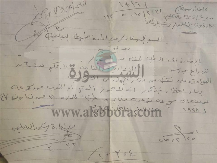 تداول نشطاء التعليم على جروب "اعرف حقك" بموقع التواصل الاجتماعى "فيسبوك" المهتم بشئون التعليم فاكسا من مديرية التربية والتعليم بمحافظة سوهاج بشأن عدم جواز النقل او الندب من مجموعة نوعية الى مجموعة نوعية مغايرة.