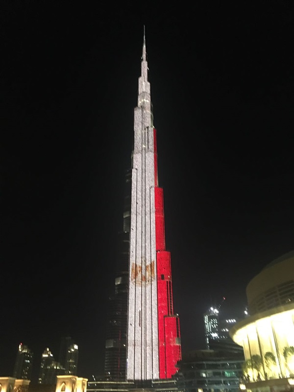 تضامناً مع شهداء حادث المنيا.."برج خليفة يكتسى بألوان العلم المصرى"