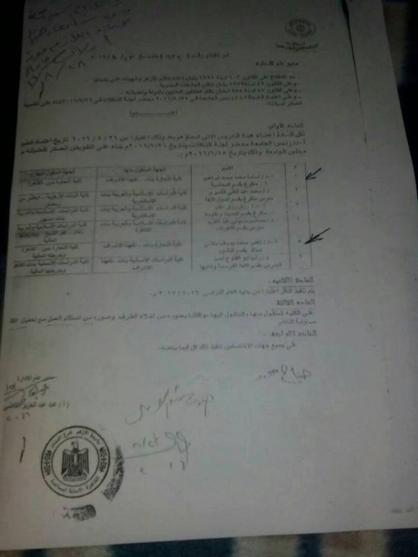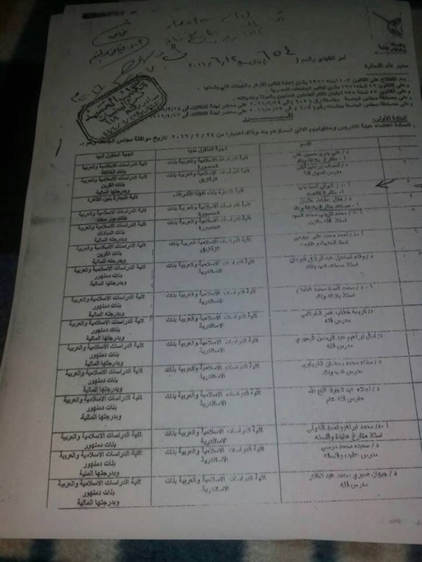 الموافقة على انتقال ٩٠ فى المائة من اعضاء هيئة التدريس تقريبا من الاقاليم للقاهرة وفروع اخرى مما ادى لتفريغ الاقاليم من الاساتذة، ان لتفريغ الاقاليم من الاساتذة ابعاد اخرى وهى ترقية من لا يستحق لملئ فراغ الاساتذة المنتقلين، كان من بين المنقولين بلا سبب وزير مالية الاخوان السابق فياض عبد المنعم حسنين وهو عضو هيئة التدريس بالجامعة و اصدقائه المقربين د ناصر ماضى العميد المعزول من تفهنا الاشراف بنات لسبب مخجل وكذلك د شوقي احمد دنيا وغيرهم ممن ينتمون للجماعة المحظورة