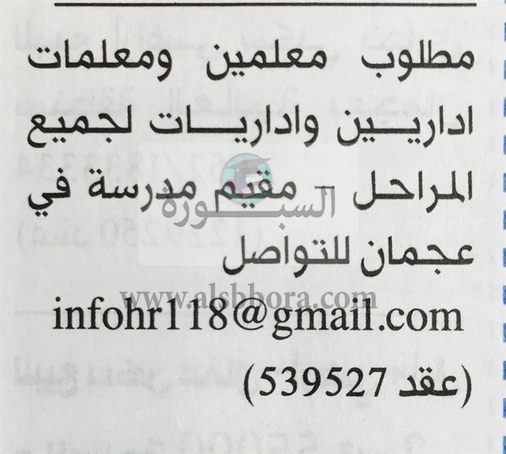 تعلن مدرسة خاصة في دولة الإمارات العربية المتحدة عن وظائف جديدة للمعلمين والمعلمات في جميع المواد وفقا لنص الإعلان التالي:-