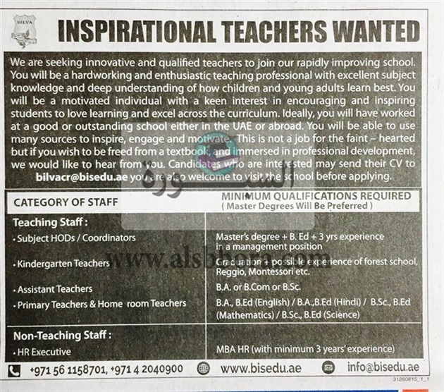 تعلن عدد من كبري المدارس القطرية عن حاجتها للتعاقد مع معلمين في جميع المواد وفقا لنص الإعلان التالي:-