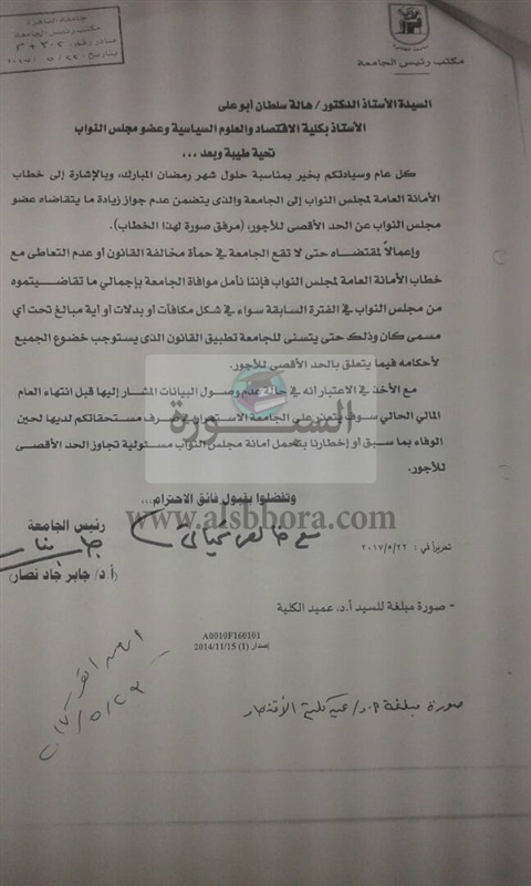 أرسل الدكتور جابر نصار رئيس جامعة القاهرة خطابا يتضمن قرار بتطبيق بخصوص رواتب أعضاء هيئة التدريس.