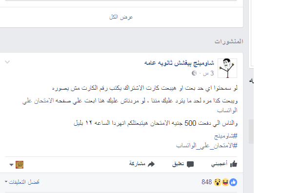 اعلنت صفحة " شاومينج بيغشش ثانوية عامة " بنشر امتحان اللغة العربية لطلاب الثانوية العامة اليوم الساعة 12 مساء