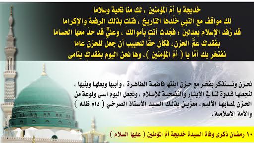 خديجة يا أم المؤمنين لكٍ منا تحية و سلاما .. لكِ مواقفُ عظيمةُ نلتِ بها الرفعة و الإكراما