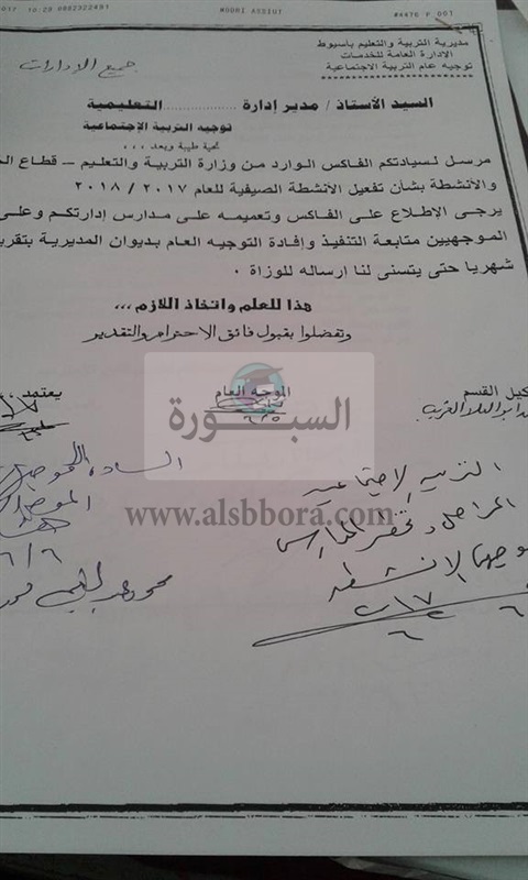 بالمستندات| "التعليم" ترسل فاكسا هاما الى المديريات والادارات التعليمية ومديرى المدارس