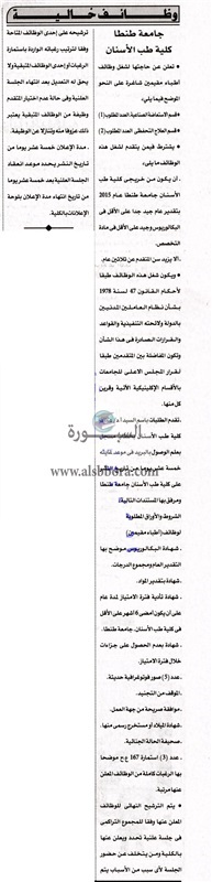أعلنت جامعة طنطا عن حاجتها للتعاقد مع أعضاء هيئة التدريس "من حملة الماجستير والدكتوراه" وذلك وفقا لنص الإعلان التالي: