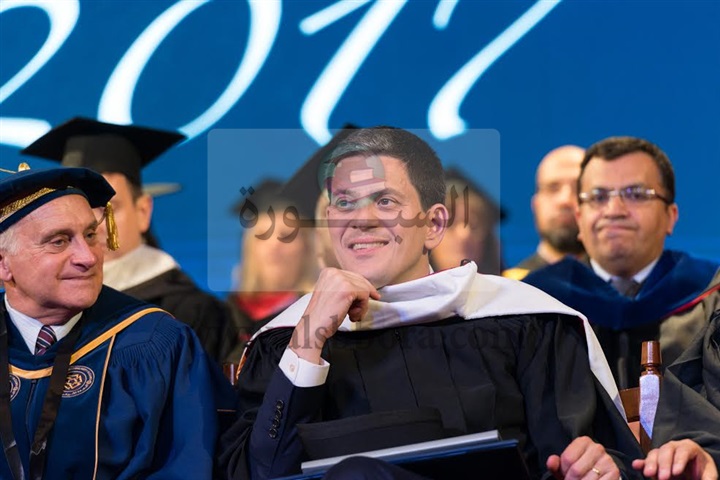 دعا ميليباند في خطابه أمام الخريجين إلى مكافحة الانقسامات العالمية، قائلا، "لقد أصبح العالم متشابكا أكثر من أي وقت مضى، إلا أن الخطر يكمن في أننا مشغولون في انقساماتنا. فهذا هو الخطر الذي أحاربه كل يوم في عملي. وهذا هو التهديد الذي أراه مخيماً على هذه المنطقة.. وهو ما سأطلب منكم محاربته من خلال استخدام المعرفة والمهارات التي اكتسبتموها هنا."
