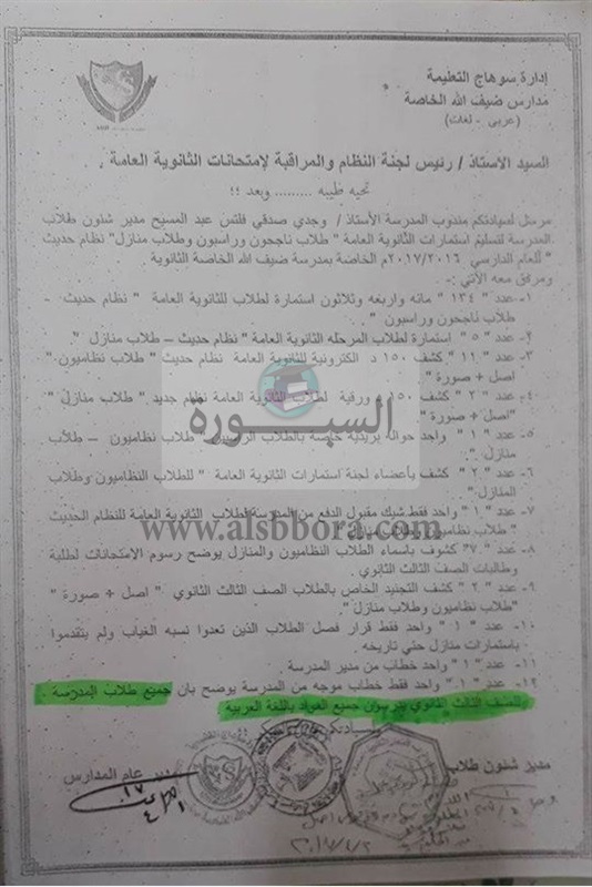اتفقت رؤى القيادات التعليمية بمديرية التربية والتعليم بسوهاج مع القيادة السياسية بالمحافظة مع ما تم عرضه من أولياء أمور مدرسة سيتي لطلاب الثانوية العامة الذين أدوا امتحان الفيزياء باللغة الإنجليزية بما هو مخالف لما تم دراسته وهذا ما تم تأكيده بأن المدرسة أرسلت لقطاع أسيوط (ب ) وهي المسئولة عن لجنة الامتحانات للثانوية العامة وتم تحويل الأمر إلى النيابة العامة للتحقيق في الأمر .