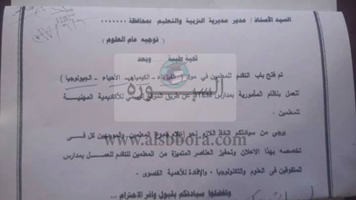 خاطبت الاكاديمية المهنية للمعلمين جميع المديريات التعليمية عن حاجتها الى مدرسين للتدريس فى مدارس "stEM" للعام الدراسى المقبل 2018/2017.