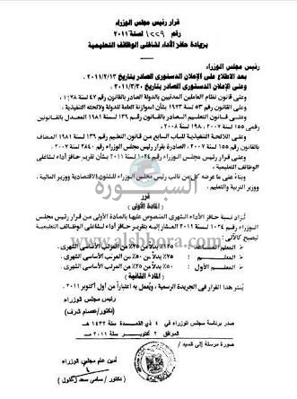 وتابعت "على" اما حافز الاداء فهو حافز صرفته الوزارة بعد مظاهرات قبل العام الدراسى ايام الجنزورى وقيمته ليست كبيرة وهو مرتبط بامضاء 18 يوما فى الدفتر والمفروض انه معمول مقابل اداء المعلم الوظيفى فى المدرسة.