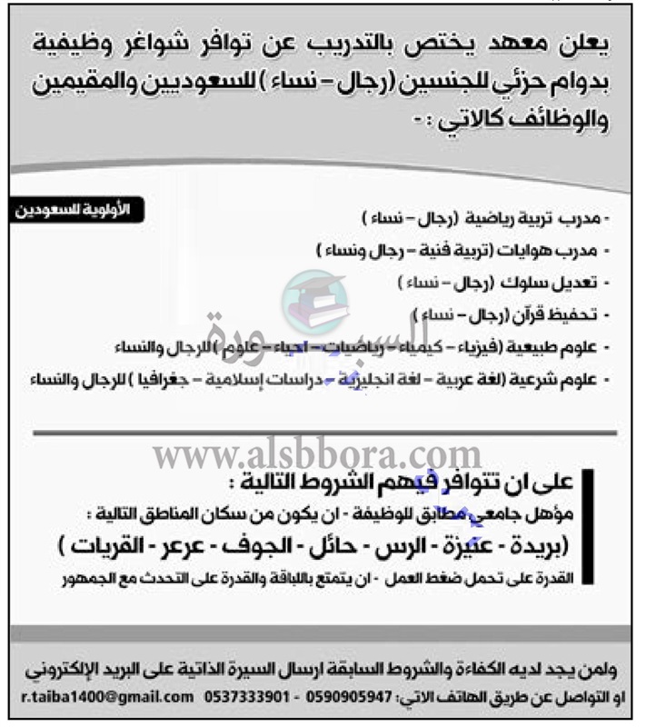 تعلن عدد من المدارس الخاصة في السعودية عن وظائف جديدة للمعلمين والمعلمات في 13 مادة وذلك وفقا لنص الإعلان التالي:-