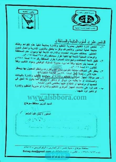 أصدرت وزارة التربية والتعليم قرارا هاما للمعلمين بشأن قواعد تنظيم وقت العمل الرسمي.. تشمل : الحضور والانصراف والتصريح بالغياب والتأخير.