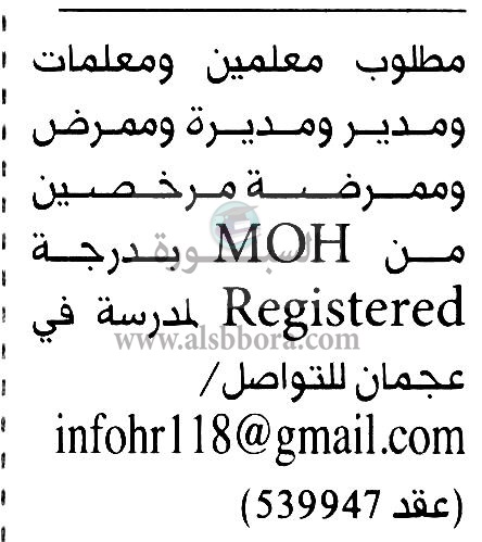 تعلن مدرسة خاصة في دولة الإمارات عن وظائف جديدة للمعلمين والمعلمات في جميع المواد وذلك وفقا لنص الإعلان التالي:-