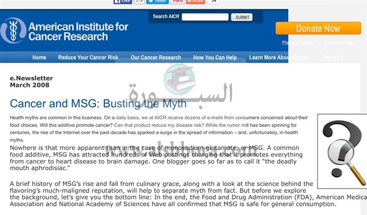 وأوضح "الناظر" أنه قام بالبحث والتحري باسلوب علمي بعيد عن الإشاعات والتهويل الى ان وصلت الى ما أعلنه المعهد الامريكي لبحوث السرطان والذي اكد ان منظمة الغذاء والدواء الامريكية والمؤسسة الامريكية الطبية والأكاديمية الوطنية للعلوم أكدوا جميعا ان هذه المادة آمنة للاستهلاك وليس منها خطورة ولا تسبب السرطان.