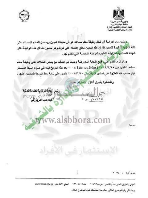 تنشر "السبورة" قرار الجهاز المركزي للتنظيم والإدارة عن كيفية حساب العلاوة الخاصة للمعلم المساعد.
