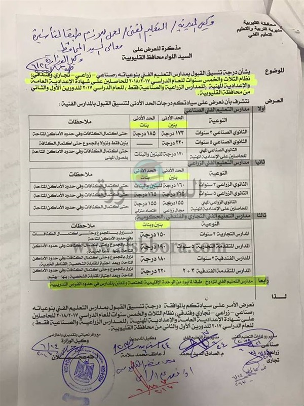 ننشر تنسيق القبول بالتعليم الثانوى الفنى للعام الدراسى 2018/2017 بالقليوبية