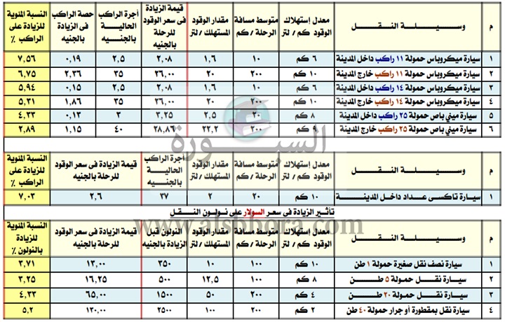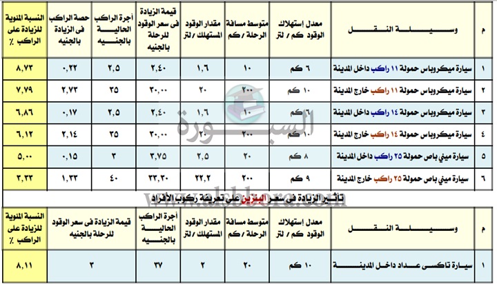 والتى تضع فى الاعتبار معايير الاستهلاك، ومعدلات الزيادة التى نتجت بعد زيادة أسعار المنتجات البترولية التى أقراها مجلس الوزراء صباح اليوم الخميس.