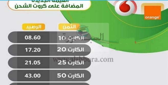 ينشر موقع السبورة اسعار كروت الشحن للاتصالات من تليفونات المحمول بعد اضافة ضريبة القيمة المضافة حيث جاء كالتالى:
