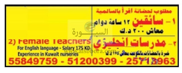 أعلنت مدرسة أهلية كبري في الكويت عن وظائف جديدة للمعلمين والمعلمات وذلك وفقا لنص الإعلان التالي:-