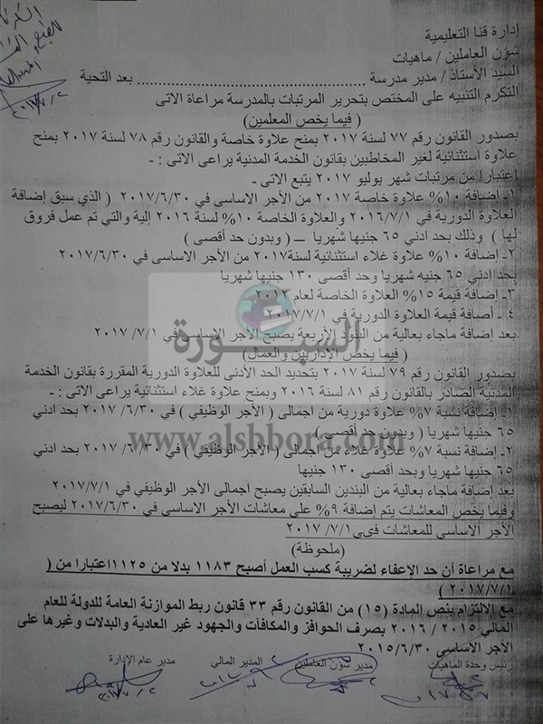 بالمستندات| قرار وزاري جديد بشأن مرتبات المعلمين والإداريين اعتبارا من يوليو 2017