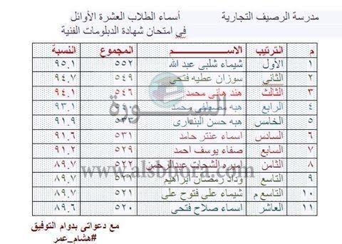 ننشر أسماء الطلاب الأوائل بمدرسة الرصيف التجارية بتعليم الرياض بكفرالشيخ