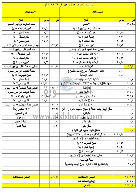 بالمستندات| انخفاض مرتبات المعلمين بعد ضم الـ "4 علاوات"