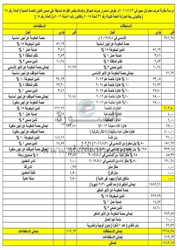 صافي المرتب في 1-7-2017 م الفعلي طبقا للقوانين المعمول بها حاليا =1494.19 جنيه